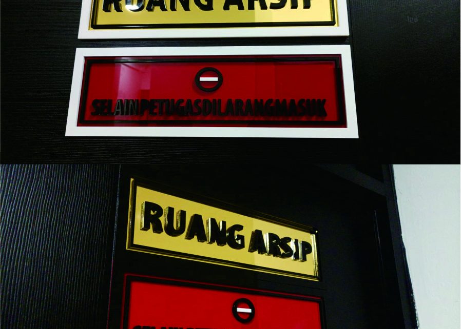 Signage ruangan satidik puspomad, menggunakan bahan akrilik 5 mm hitam + 2 mm mirror gold dengan dimensi 40 x 15 cm, kami menggunakan bahan akrilik Marga Cipta (MC) akrilik dengan kualitas terbaik bahkan sudah di eksport sampai negara negara Asia.Proses pemotongan menggunaka mesin laser cutting sehingga hasil potongan menjadi lebih halus dan presisi sesuai dengan […]
