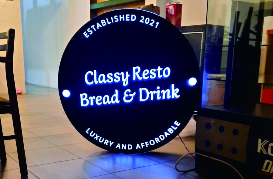 Pembuatan neon box/letter sign Classy Resto dengan diameter 100 cm dan tebal 7 cm.Akrilik depan menggunakan Marga Cipta (MC) putih susu dengan dilapis cutting stiker oracall, sedangkan untuk list/ketebalan menggunakan akrilik MC hitam supaya tidak tembus cahaya. Intermika akrilik.Akrilik murah.Akrilik custom.Akrilik Jakarta.