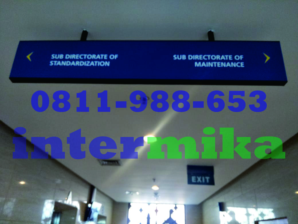 Plang arah bandar udara soekarno-hatta Tangerang, box akrilik 120 cm x 6 cm x 40 cm + rangka besi + cutting stiker oracall