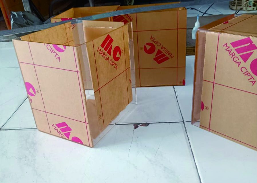 Box akrilik 5 sisi menggunakan akrilik MC 3 mm, dimensi box 15 x 20 x 20 cm.