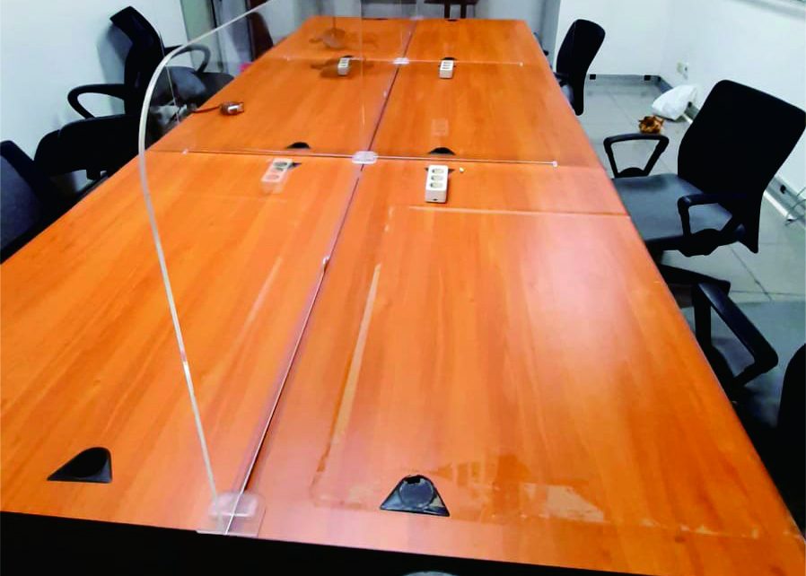Partisi meja rapat menggunakan akrilik MC 3 mm bening dengan dimensi panjang 300 cm dan tinggi 60 cm tanpa sambungan, sedangkan 2 sekat tengah dimensi panjang 160 dan tinggi 60 cm tanpa sambungan.Pemotongan menggunakan mesin laser cutting akrilik sehingga hasil potong lebih rapi, halus, bening, presisi sesuai ukuran dan bentuk desain customer.Kami juga menyediakan layanan […]
