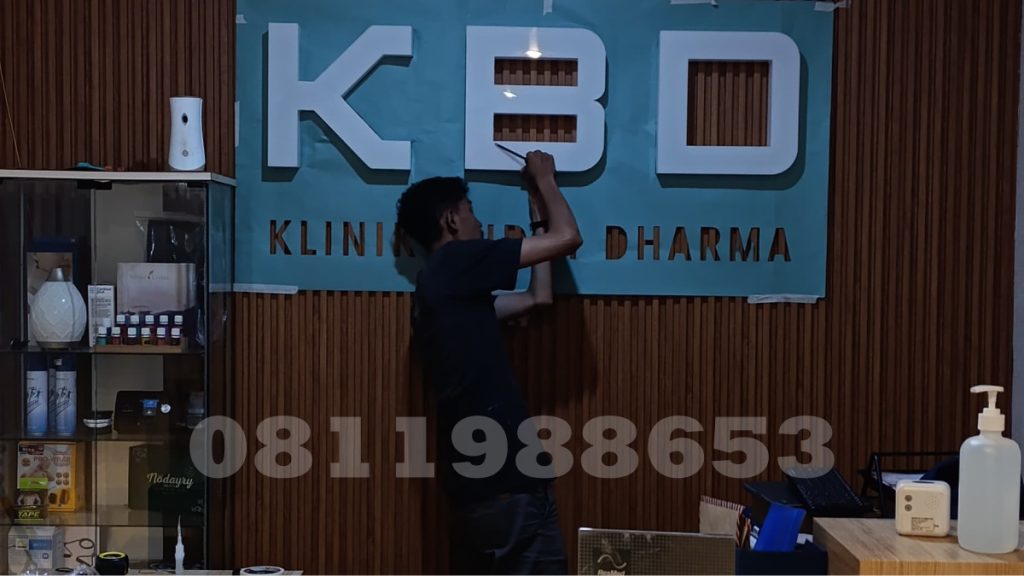 Huruf timbul akrilik LED pada logo KBD – Klinik Budhi Dharma tampil modern, elegan, dan profesional. Desain huruf menyala (backlit) dengan pencahayaan putih memberikan kesan bersih dan terpercaya, sangat cocok untuk klinik, rumah sakit, kantor, maupun perusahaan yang ingin meningkatkan citra brand di area resepsionis atau lobby.