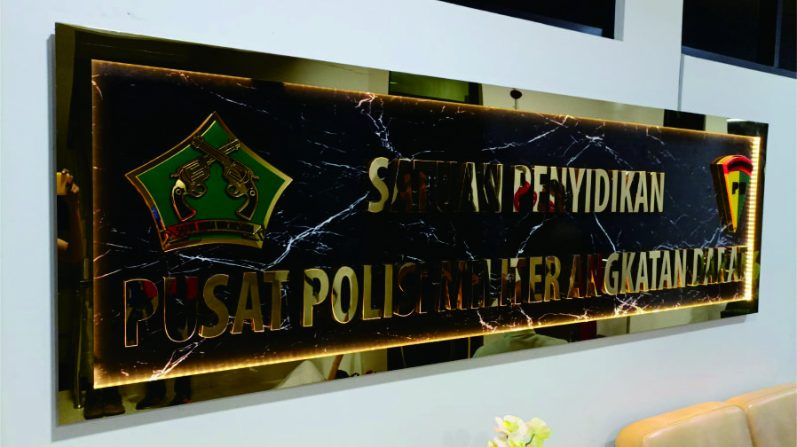 Sat idik puspomad kembali mempercayakan pembuatan sign board interior mereka kepada kami karena mereka puas dengan hasil produksi kami yang berkualitas dengan harga yang terjangkau, kami selalu menggunakan bahan material terbaik dan pemotongan menggunakan mesin laser cutting sehingga hasil menjadi lebih halus dan presisi.
