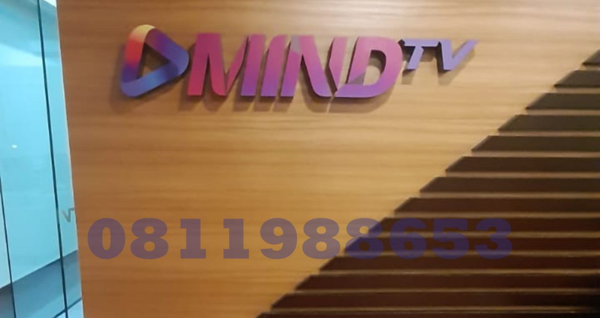 huruf timbul akrilik MIND TV menggunakan material akrilik berkualitas tinggi dengan finishing warna gradasi ungu dan pink yang terlihat elegan. Desain ini memberikan kesan modern, profesional, serta meningkatkan citra brand di area interior kantor atau studio. Huruf timbul akrilik menjadi pilihan utama untuk perusahaan media, perkantoran, hingga corporate branding karena tampilannya yang bersih, rapi, dan […]